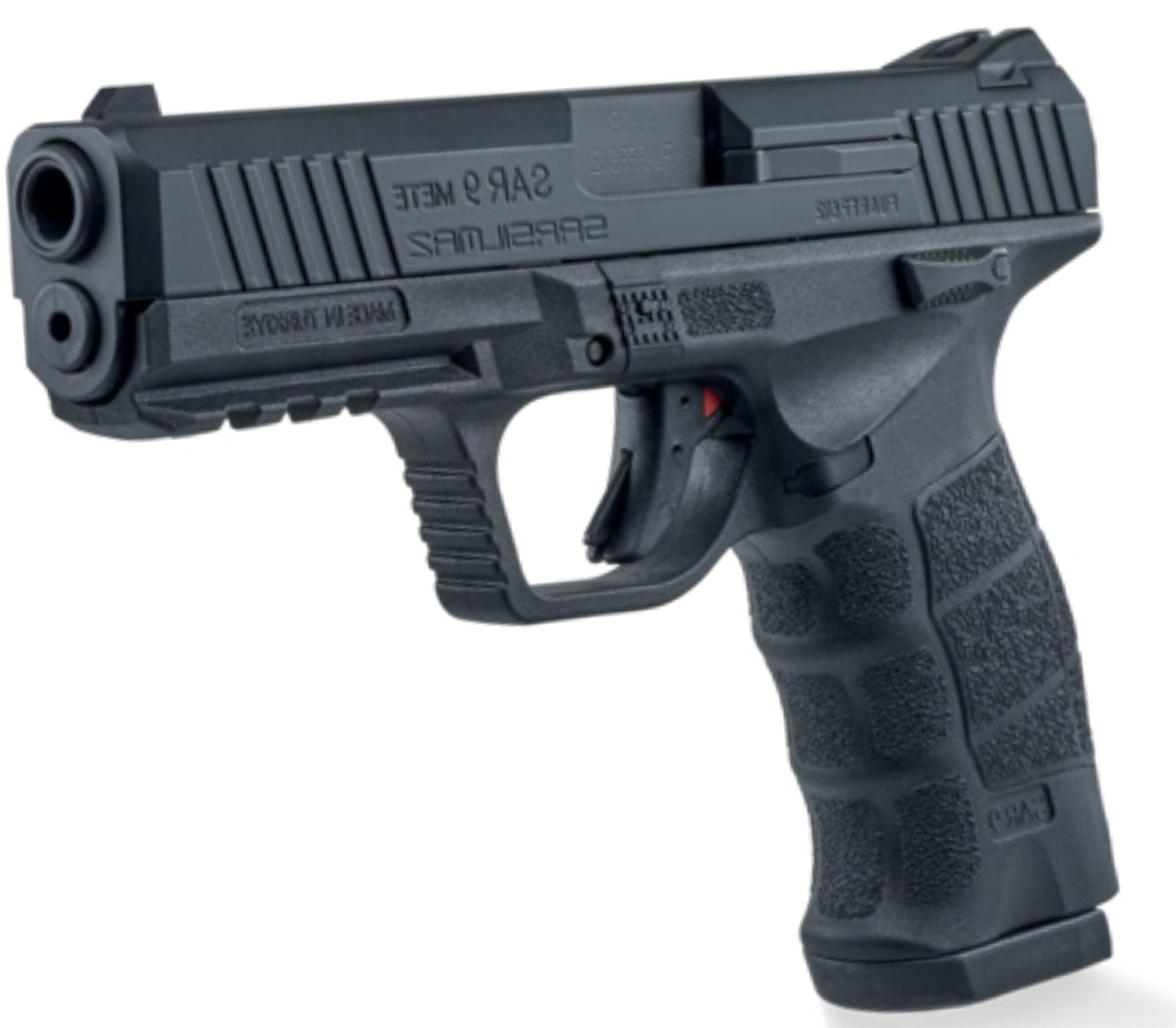 SAR9 METE — это продукт проектов, реализуемых с философией«производство лучших пистолетов». SAR9 METE с легкой полимерной рамой нового поколения выделяется ведь он весит всего 750 грамм. С пистолетом предлагают три размера анатомических сменных боковая и задних накладок. Оснащен оптическим фиксированным целиком, SAR9 METE обеспечивает безопасное использование за счет спускового крючка предохранителя и блока ударника вместе с предохранителем. SAR9 METE также позволяет использовать аксессуары с планкой Пикатинни на его рамке.