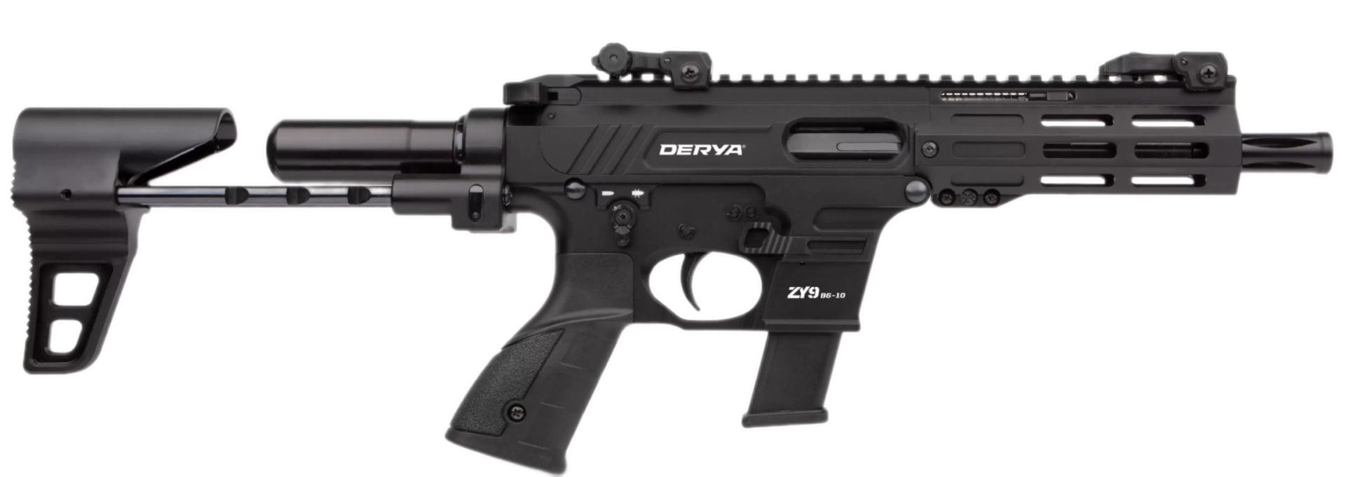 ZY9 — пистолет-пулемет, который предлагает множество функций, таких как опции приклада, спускового крючка, планки Пикатинни. Этот пистолет имеет стволы различной длины, иподдерживаемый цевьем M-Lok во всю длину. ZY9 — это система с закрытым затвором, приводимая в действие 9-мм затворной группой и снабжаемая стандартными 9-мм магазинами GLOCK®. Разработка ZY9 обеспечила достижение таких целей как надежность, доступность по цене и привычные элементы управления для пользователя. ZY9 B6-10 переосмысливает категорию пистолетов-пулеметов, предлагая новый уровень двойной системы с различными вариантами прикладов и характеристиками стволов. Данный вид пистолет-пулемета имеет ствол длинной 6″ с дальностью эффективной стрельбы до 150 м.
